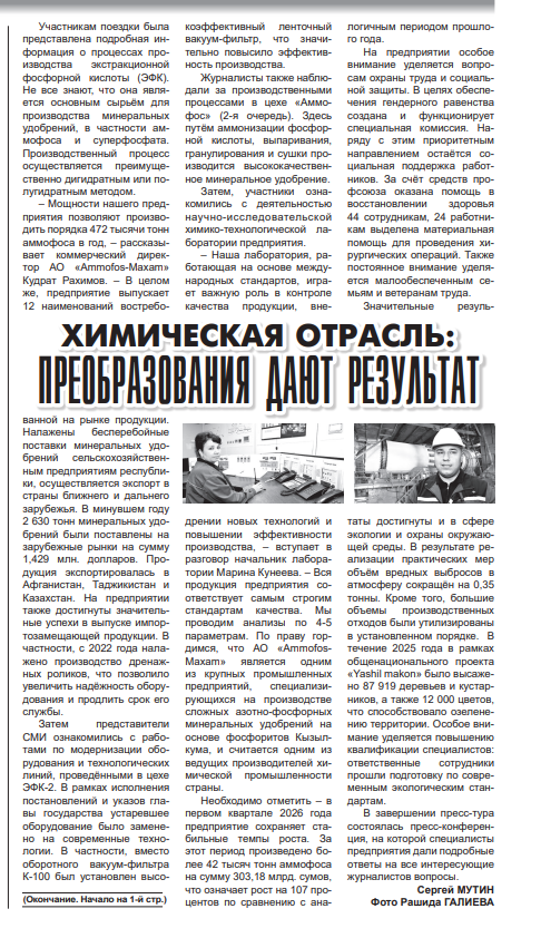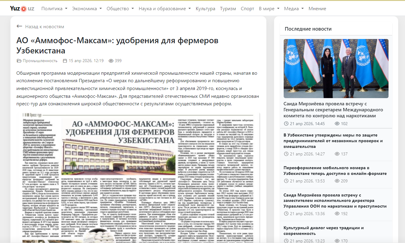 “Ammofos-Maxam” AJda o'tkazilgan press-tur tafsilotlari respublikamiz gazetalarida