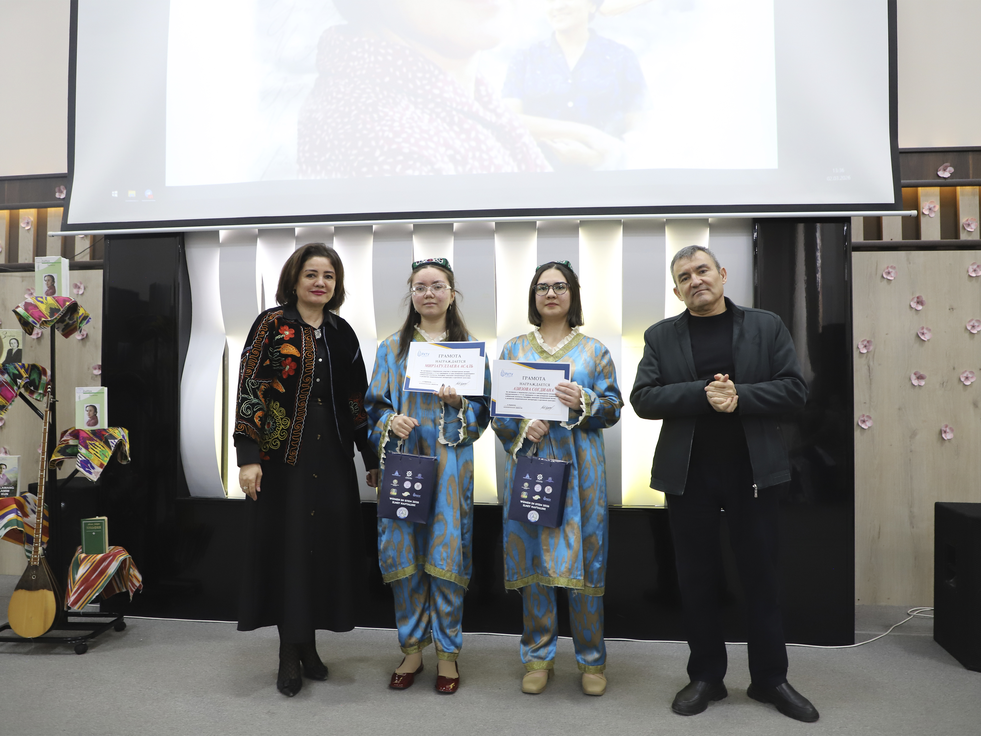 Shuningdek, kecha davomida kuy-qo‘shiqlar va milliy raqslar namoyish etilib, tadbir yanada ko‘tarinki kayfiyatda o‘tdi. Talabalar tayyorlagan sahna ko‘rinishlari va badiiy chiqishlar ishtirokchilarda katta taassurot qoldirdi. Faol va tashabbuskor talaba-qizlar “O‘zkimyosanoat“ AJ tomonidan rag‘batlantirildi.