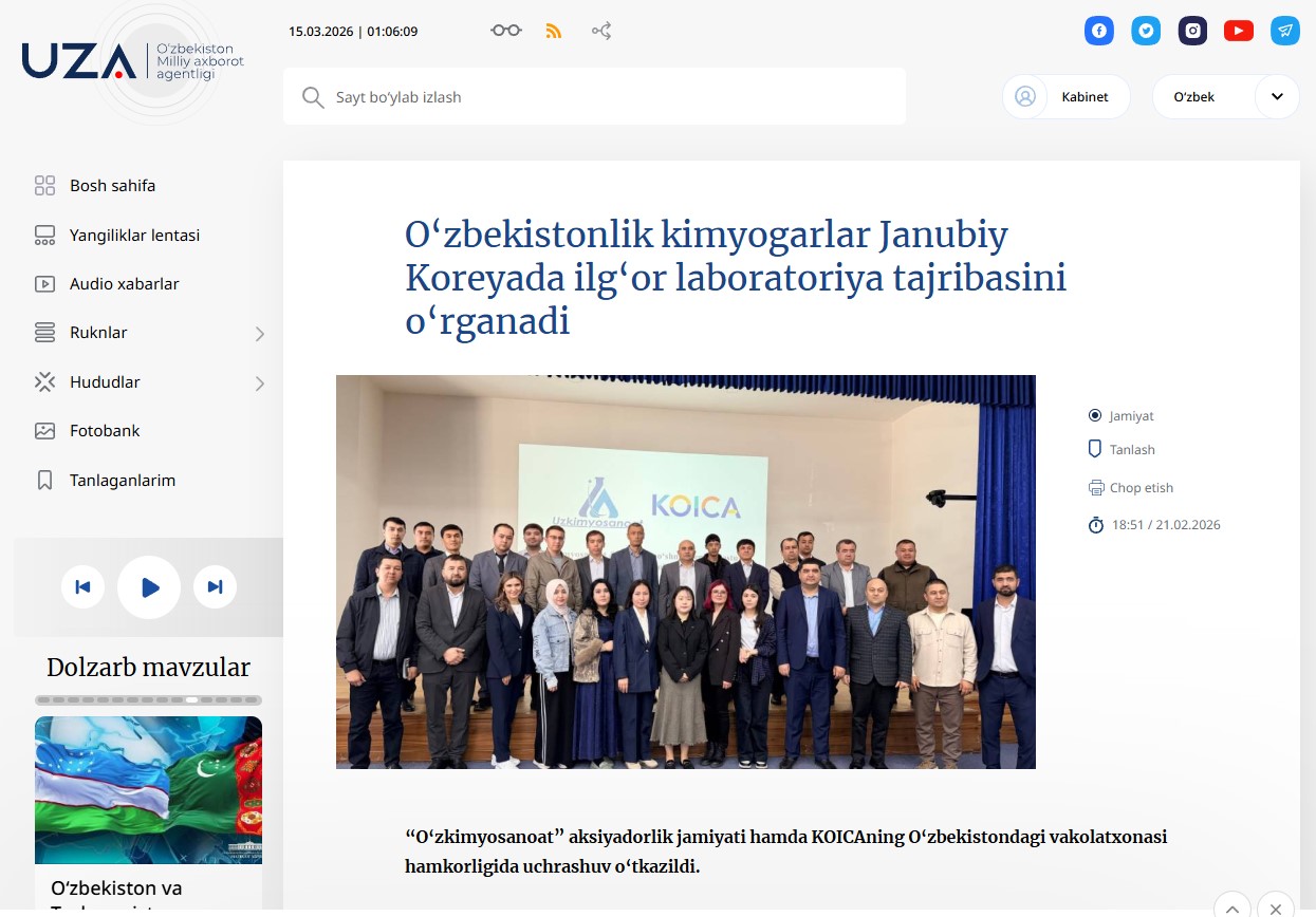 “O‘zkimyosanoat” aksiyadorlik jamiyati hamda KOICAning O‘zbekistondagi vakolatxonasi hamkorligida uchrashuv o‘tkazildi.