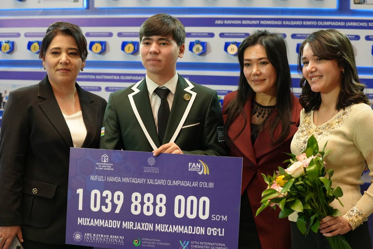Особо отмечены учащиеся специализированной школы имени Абу Али ибн Сино Далер Рахимов и Миржахон Мухаммадов, каждому из которых вручена денежная премия в размере 1 млрд сумов. Награда присуждена за завоевание золотых медалей на Международной химической олимпиаде, Международной олимпиаде имени Менделеева и Международной химической олимпиаде имени Абу Райхана Беруни.