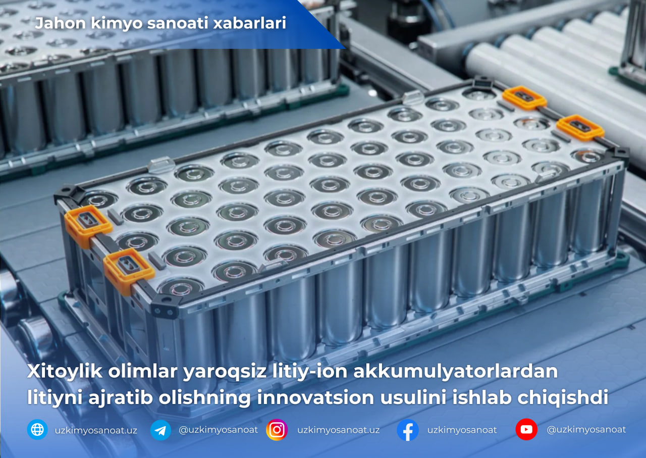 Хитойлик олимлар яроқсиз литий-ион аккумуляторлардан литийни ажратиб олишнинг инновацион усулини ишлаб чиқишди.