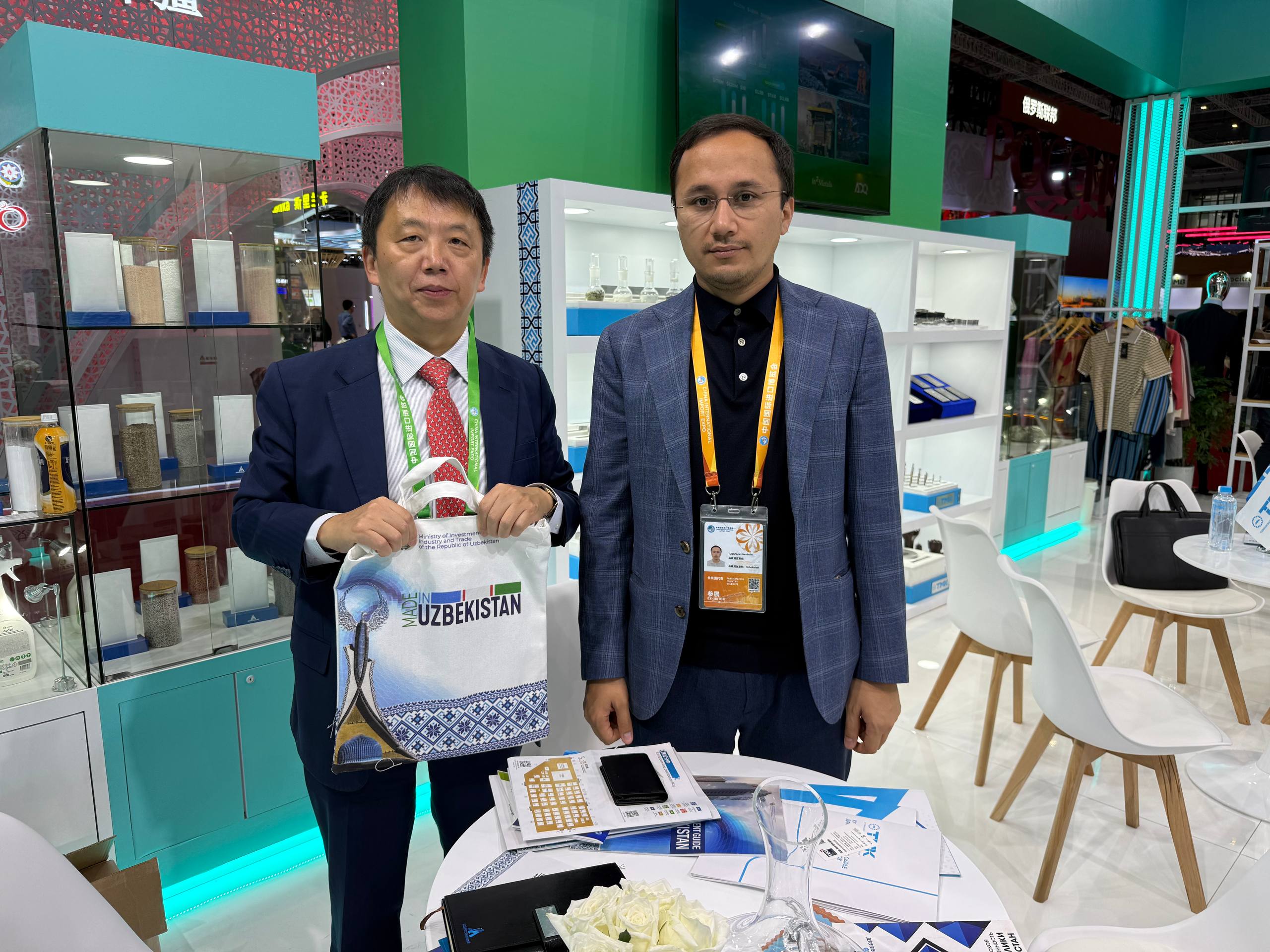 Шанхай шаҳрида ўз ишини бошлаган 8-Хитой халқаро импорт кўргазмаси (CIIE 2025) доирасида Ўзбекистон Миллий стенди ўзининг бой саноат салоҳияти, миллий ҳунармандчилик анъаналари ва амалий санъат намуналарини кенг жамоатчиликка тақдим этмоқда. Ушбу йирик халқаро кўргазма – дунёнинг энг нуфузли савдо майдонларидан бири бўлиб, унда кўплаб давлат ва минтақаларнинг компаниялари, шунингдек, минглаб йирик халқаро брендлар ўз маҳсулот ва хизматларини намойиш қилмоқда.