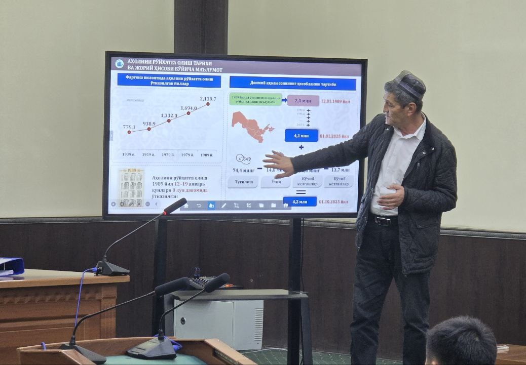 Учрашувда рўйхатга олиш тадбирига тайёргарлик жараёнлари ва уни самарали ташкил этиш масалалари муҳокама қилинди. Ишчи гуруҳ томонидан амалга оширилаётган ишлар ҳолати таҳлил қилиниб, жараённи сифатли ташкил этиш, ходимларнинг масъулиятини ошириш ҳамда аҳолини хабардор қилиш бўйича кўрсатмалар берилди.
