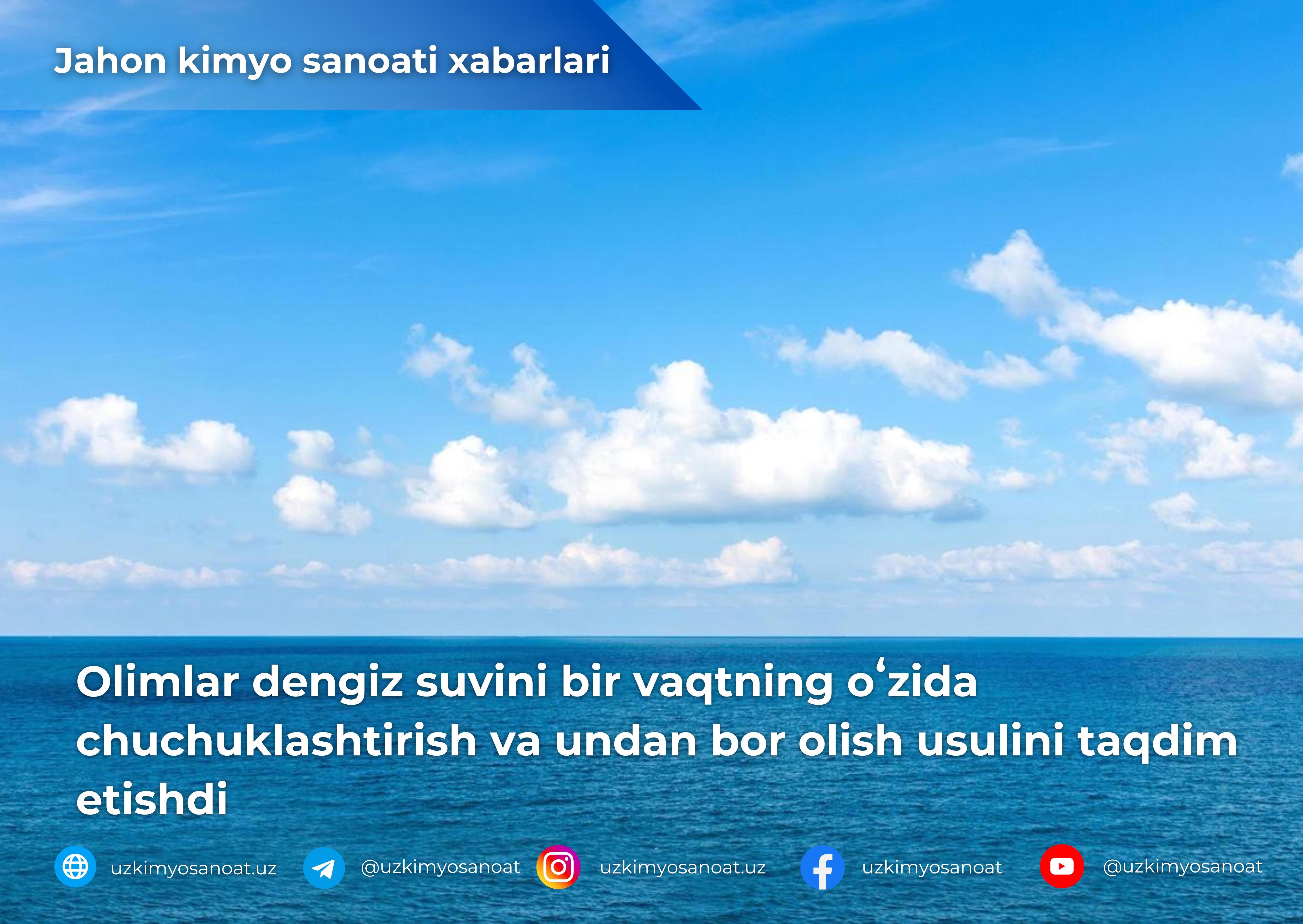 Олимлар денгиз сувини бир вақтнинг ўзида чучуклаштириш ва ундан бор олиш усулини тақдим этишди