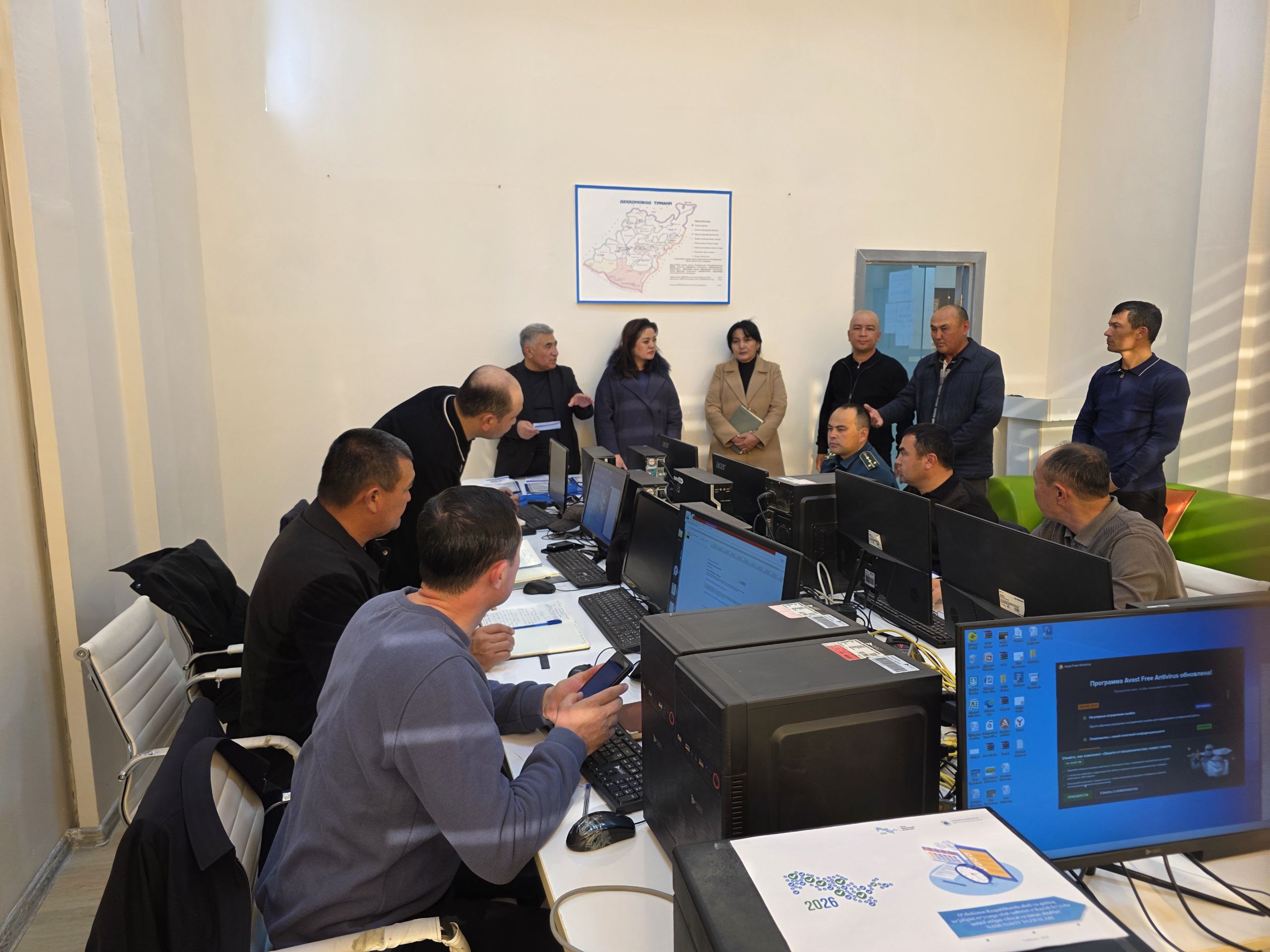 Шунингдек, ишчи гуруҳи туман ҳокимлигида тузилган аҳолини рўйхатга олиш штабида бўлиб, ушбу тадбирга тайёргарлик жараёнлари, штаб фаолияти ва яратилган шароитлар билан яқиндан танишди.Рўйхатга олиш жараёнида 38 миллион аҳолининг таркиби ва миграцияси, оилавий ҳолати, фаолият тури, даромад манбалари тўғрисида ягона маълумотлар базаси шакллантирилади.