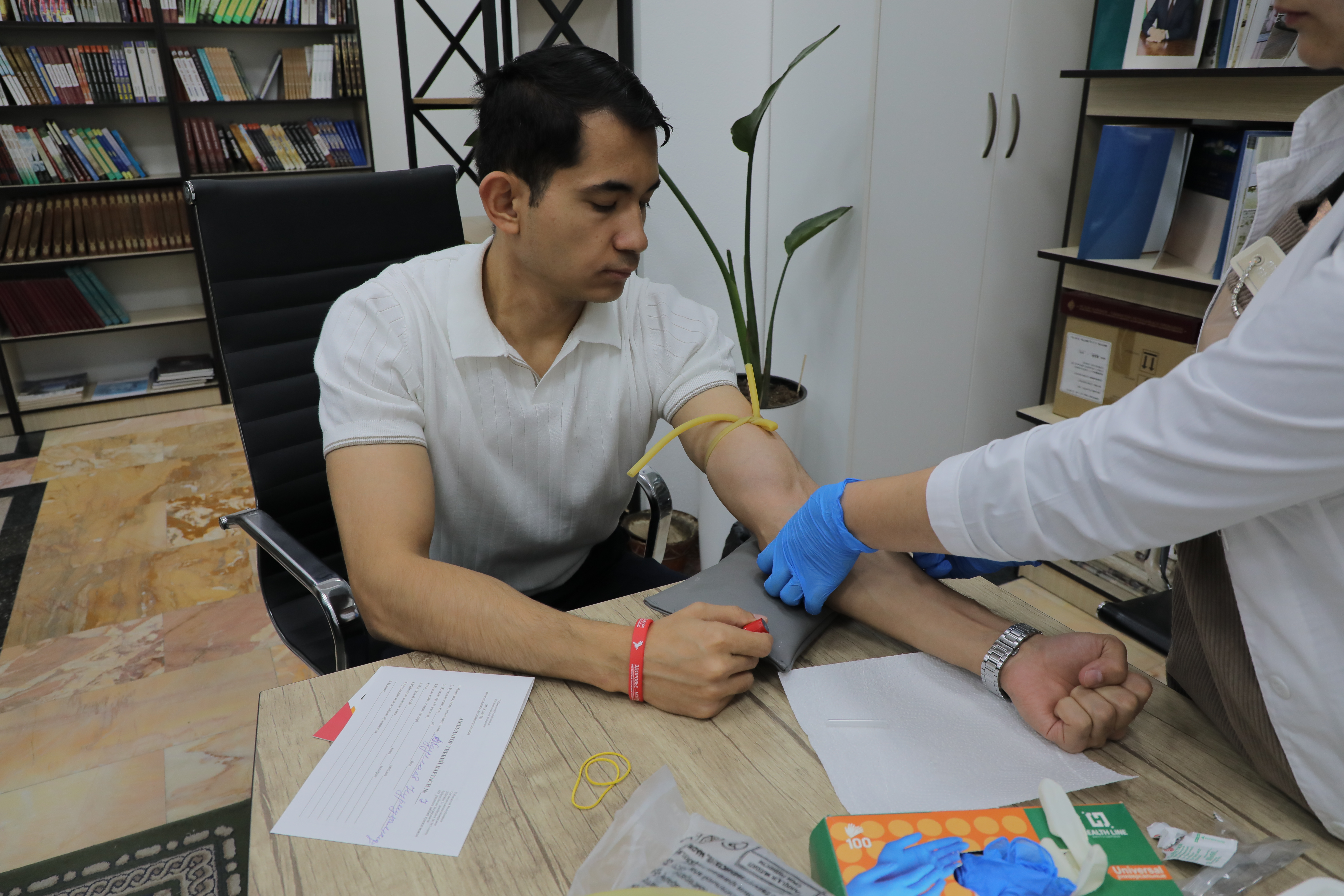 Профилактик кўрикка мобил клиника, тор йўналишдаги малакали шифокорлар, шунингдек, лаборатория мутахассислари жалб этилди. Тиббий текширув давомида 150 нафар ходимларнинг соғлиғи ҳолати атрофлича ўрганилди, уларнинг умумий саломатлик кўрсаткичлари баҳоланди, зарур тиббий тавсиялар берилди ҳамда индивидуал профилактик чоралар тўғрисида батафсил тушунтириш ишлари олиб борилди. Мазкур ташаббус ходимлар соғлиғини мустаҳкамлаш, юқумли касалликларни эрта аниқлаш ва соғлом турмуш тарзини тарғиб этишга қаратилган.